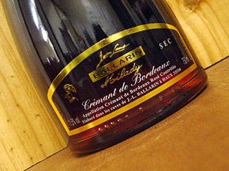 (1)Milady Cremant de Bordeaux Rose Sec ワイン名:ミラディー・クレマン・ド・ボルドー・ロゼ・セック 格付け :AOCクレマン・ド・ボルドー 生産地 :グラーブ地区 生産者 :ジャン・ルイ・バララン社 葡萄品種:カベルネ・ソービニョン100% ワインのコメント: フランスワインの銘醸地として名高いボルドーで造られたクレマン(発泡性ワイン)。色は鮮やかなロゼ、しっかりとした色調でプラム色も感じます。果実の甘味と酸がバランスよく、加えてカベルネ・ソーヴィニヨンの苦味があり、ボディも十分。13度で行う長期低温熟成(12-14ヶ月:瓶内二次発酵)によってこのキメ細やかな泡とすっきりした酸味が出来上がります。
