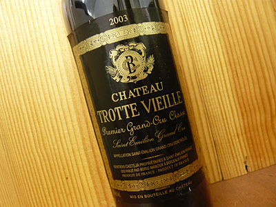 「2003年のトロット・ヴィエイユは長年のうちで最上のトロット・ヴィエイユである事は私のお墨付きだ。当主のフィリップ・カステジャは品質をグレードアップすべく真剣に努力している。選別をより厳しくし、樽内マロラクティック発酵を行い、セラーでの操作を減らしているのだ。この年のワインは賞賛に値する作品となっている。緑いっぱいまで濃いルビー/紫色と、チョコレートと混ざり合ったブラックカラント、チェリー、スパイス箱、香ばしいオークの大柄な、甘いノースを誇っている。ミディアムからフルボディで、素晴らしい甘みがあるのは他より突出したグリセリン(ほかより高いアルコール)があるためだ。継ぎ目のなさや、しなやかさ、享楽的であると同時に知的なスタイルが感じられる。2〜3年年はセラーで寝かせて、その後15〜16年で飲むこと。印象的。」90〜92点