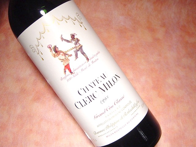 (ロバート・パーカー)生産者:1453年の文献には葡萄農園と醸造所があったことが記されている。”トロット・ヴィエイユ”と称された醸造所が15世紀には既に存在していた。トロット・ヴィエイユ(老婆の散歩)の名前の由来は14世紀にシャルトルーズ村に住む女性がいたという史実に基づく。このご婦人はボルドー市街に散策することが大好きで、ボルドーからの駅馬車の停車場近くをトボトボと歩いていたという逸話がある。このご婦人は大急ぎで駅馬車に駆け込むことが見かけられ、サンテ・ミリオンの人々は彼女を「トロット・ヴィエイユ」(老婆が歩いている)と名付けたというもの。 葡萄樹木の一部はフェロキセラ禍以前のものもあり、樹齢140年を超える老木もある。 「このワインは純粋な石灰質のテロワールから生み出されるので、トロット ヴィエイユが豪華なまでにリッチなニューウェーヴのサンテミリオンに似てくることを期待してはいけない。惜しみないミネラル分を感じさせる。フィネスと繊細さのあるワインである。サンテミリオンの名高い第一特別級の1つ、トロット・ヴィエイユは、サンテミリオンの東の比較的孤立した場所にあって、土壌は主に石灰質である。1949年以来、ボルドーのよく知られたボリーマヌー社の所有になっている。この会社は、ポイヤックの5級シャトーのバタイエ、ポムロールの成長株のドメーヌ・ド・レグリース、それにそれほど知られていないボルドーのシャトーをいくつも持っている。いささか珍しいことではあるが、トロット ヴィエイユの畑は石壁に囲われた1区画である。このシャトーのワインの目覚ましい品質向上は、おおむねフィリップ・カステジャの手腕によるものだ。厳しい選別、新樽の増加、そして遅い収穫の決定とマセレーションを長くしたことが相当の深遠なワインに結実し、いまやこのアペラシオンの最上のワインに挑むレベルにまできている。」(ロバート・パーカー) (4)Chateau Clerc Milon 1993 ワイン名:シャトー・クレール・ミロン 格付け :AOCポイヤック 1855格付けメドック・グラン・クリュ5級 生産地 :メドック地区 ポイヤック村 生産者 :シャトー・クレール・ミロン 葡萄品種:カベルネ・ソーヴィニヨン46%、メルロ35%、カベルネ・フラン15%、プティ・ヴェルド3% ワインのコメント: 縁まで濃い黒/ルビー色をしており、燻煙、バーベキューのスパイス、ブラックベリー、ローストしたコーヒー、チョコレートのエキゾチックなアロマを提供している。深み、噛みごたえ、厚みのある、ジューシーな、このとろりとした舌触りをした、十分な素質のあるフルボディの北メドックは、多分若いうちでもおいしく飲めるだろうが、15〜20年は持つだろう。《ボルドー第4版より抜粋》
